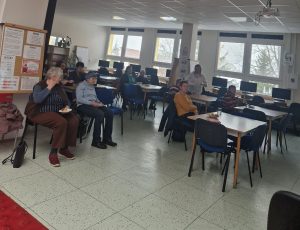 K příjemné atmosféře přispěla také připravená káva a drobné občerstvení, které zpříjemnily čas strávený sledováním přednášky. Na závěr si senioři nenechali ujít příležitost projít se po budově školy a podívat se, jak se u nás žije a učí.